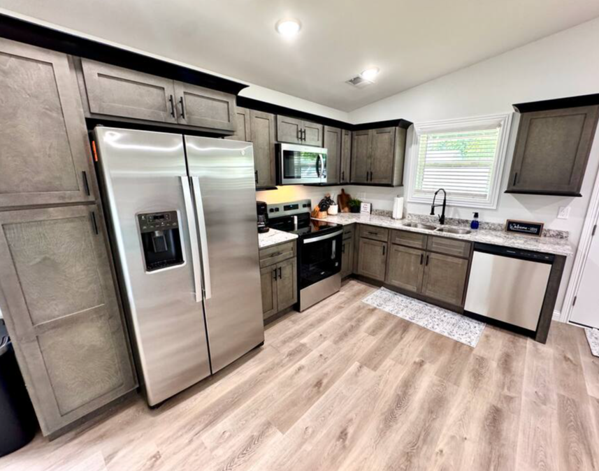 This newly built home is centrally located in a quiet neighborhood. The fresh decor + all new amenities make it a perfect option for business stays + smaller family gatherings.