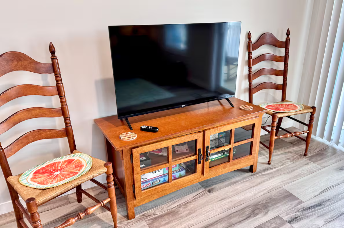 •Queen sofa bed in open concept living room w/TV, games, + books